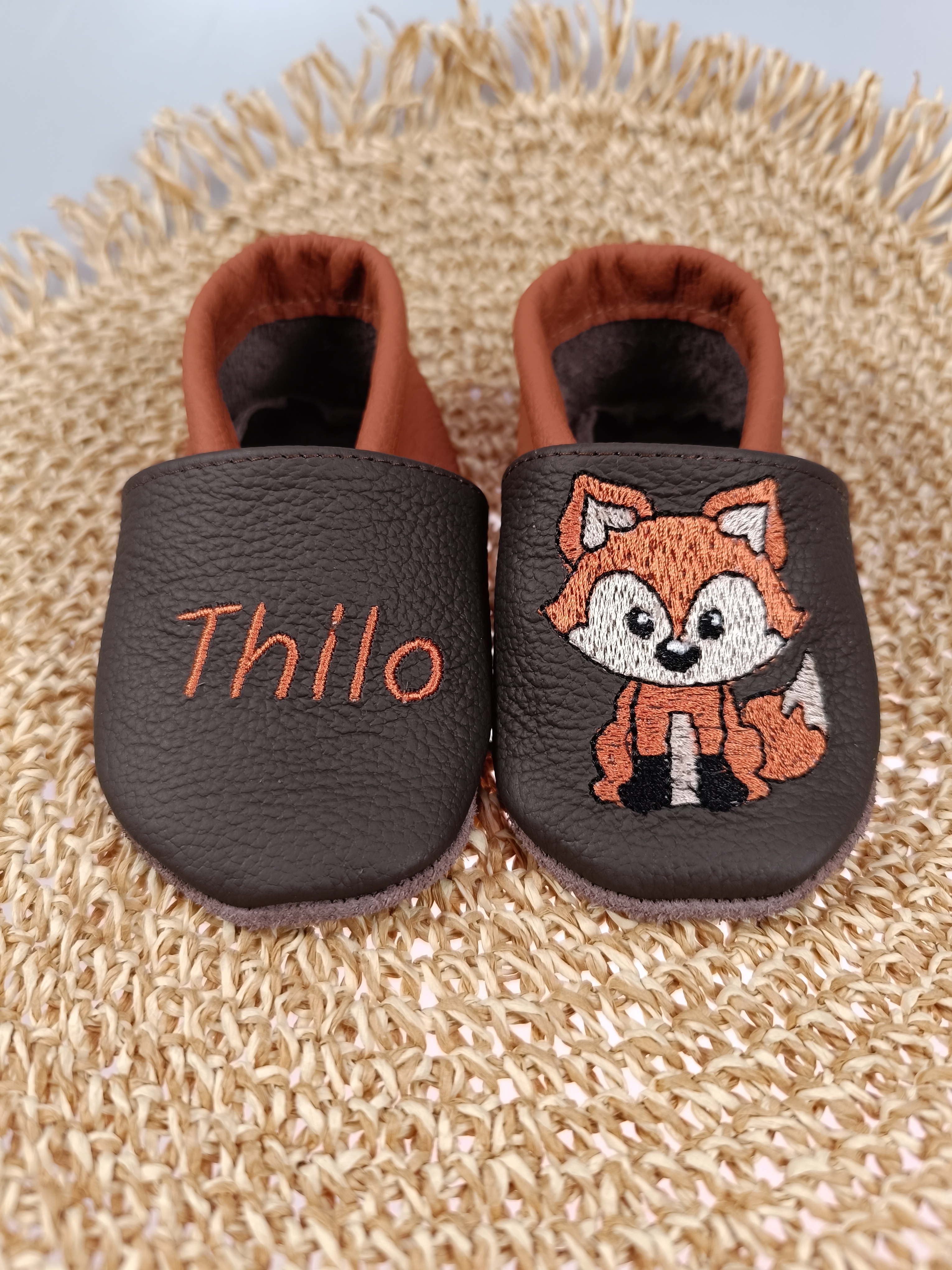 Lederpuschen Fuchs/Name gestickt
